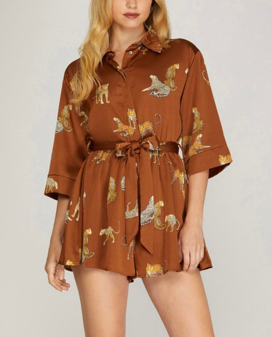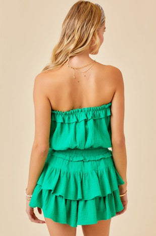 Denim Strap Tie Romper With Ribbon Bow Detailing