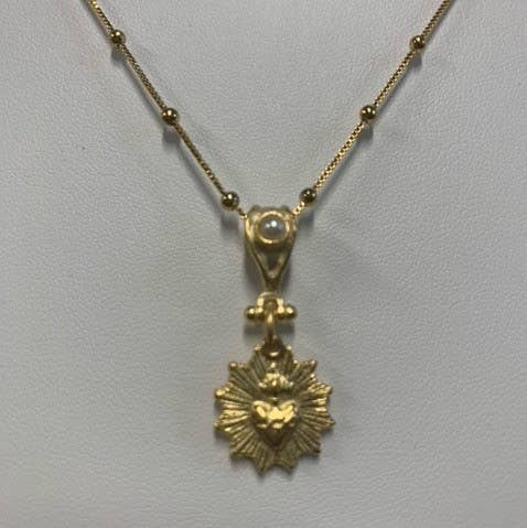The N2188P WP Sacred Heart from Weisinger Designs is a testament to faith and fashion. Crafted with an intricate sacred heart design, this pendant/charm necklace features a sparkling cubic zirconia stone. The necklace length is adjustable from 16 to 18 inches, making it versatile for any outfit. Weisinger Designs creates pieces that are not only visually appealing but also rich in symbolism. This necklace is a beautiful expression of your inner soul and a timeless addition to your jewelry collection.